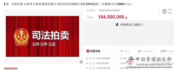 2019年9月初,山西普大煤业所持晋商银行的1.53%股权(含配股分红2000万元)现身阿里司法拍卖平台,此举意味着普大煤业旗下最容易变现的资产将被正式司法处置,但最终结局却不甚理想。