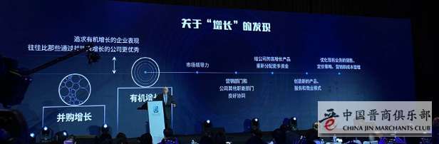 关于增长,与通过并购实现增长相比,我比较倾向于内生性增长。我知道有些企业现在的业务很不错,通过并购其他的企业,把竞争对手买下来,这些是外生的增长。但是有很多证据显示,如果一个企业实现了内生性增长,不是通过并购来实现的,这样的企业会更优秀。内生性增长意味着企业有更优秀的市场营销能力,有更好的领导力等等。同时,企业的市场营销战略也会更加融入到企业的各个部门当中,并通过产品,通过客户,来进行他们价值的提升。