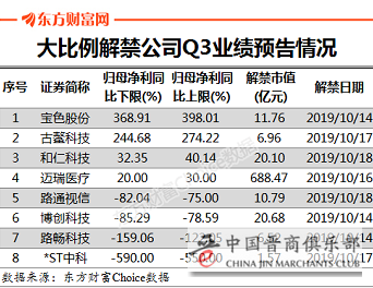 当前,正值三季报及三季报预告披露季,而业绩的好坏又在一定程度上影响着解禁的负面效果,那么上述大比例解禁公司的业绩又是怎样呢?