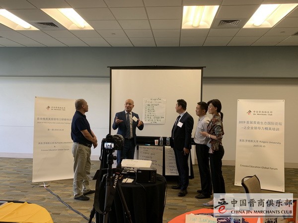 2019年10月10日,出席2019首届晋商生态国际论坛的国内晋商代表们在美国国立常春藤大学罗格斯大学进行了一天培训学习,主题为“领导力” ,罗格斯大学两位领导力培训专家为大家送上了一天的高效培训学习,代表们收获满满、感触多多。
