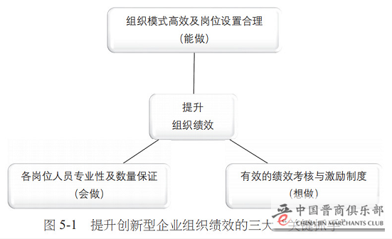 提升组织绩效的三大“关键抓手”:组织模式设计、人员专业性、绩效考核与激励制度,分别对应“能做”“会做”“想做”,如图5-1所示。