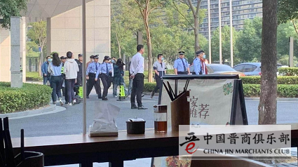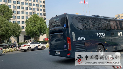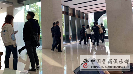 据记者不完全统计,现场停着13辆警车,一辆特警字样大巴车,3辆普通大巴车。大堂内咖啡店员工对记者透露,11点左右有大批警察上楼, “具体数量不清楚,但是50名左右应该有,都是从门前的车上来的。”该名员工回忆道。