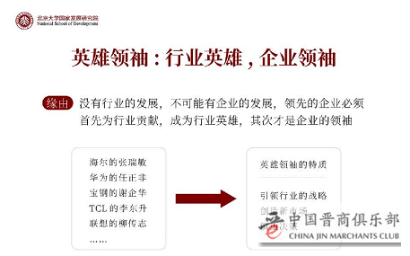英雄领袖最大的三个特征,就是对行业要做贡献,对国家、民族要有担当,对员工要有培养发展的意愿。当他们做这三件事情的时候,他们就不断地推动整个行业的进步。