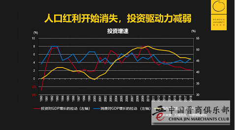 先说坏消息。储蓄是投资的来源,过去中国经济高速增长是投资驱动的,但自2009年以来,随着人口老龄化,国内总储蓄率呈下降趋势,与投资相对应——投资GDP的拉动也呈波动下降趋势。