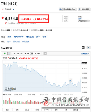 日本卫材也在今日暴涨18.07%,暴涨1000日元每股,收盘报价为6534.0,最新市值超千亿元,暴涨超百亿元。