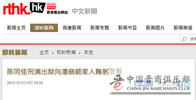 据港媒刚刚消息,触发香港特区政府修订《逃犯条例》的“陈同佳案”当事人陈同佳今日(23日)9时许在西贡壁屋监狱刑满出狱, 并向潘晓颖家人鞠躬致歉。