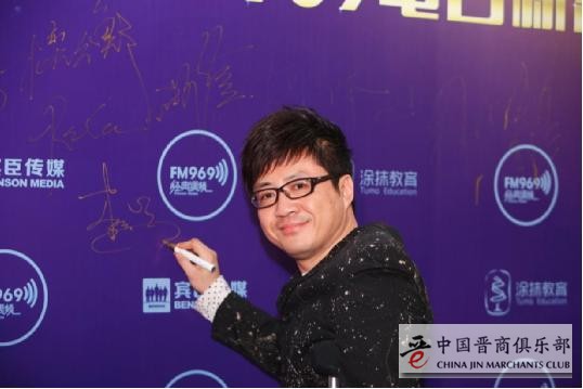 图为著名音乐人、歌手李琛在“明星红毯秀”的签字板上签字