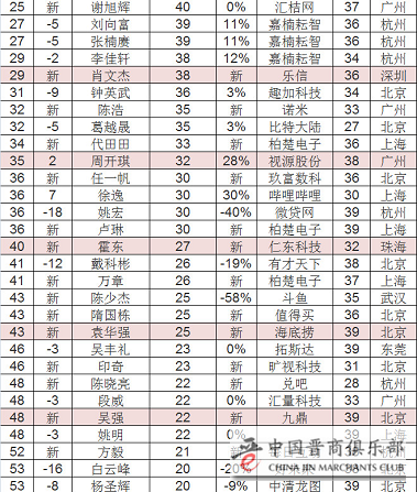 5.只有一位女性:来自文化传媒行业的汉鼎宇佑吴艳。胡润表示:“中国最成功的女企业家主要是60后和70后,这54位80后成功创业者中,只有一位女性。”