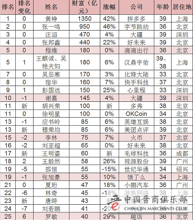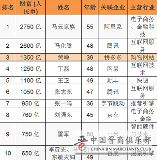 其中,拼多多的创始人、CEO黄铮为80后白手起家首富。