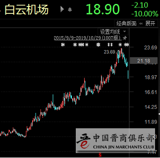 10月29日开盘白云机场股价直接低开4.29%,而后快速跌停,封单3万多手。