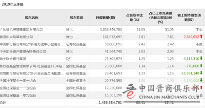 全国社保基金一零九组合为三季度新进机构,增持数量为1556.32万股,占总股份比例达0.75%,为公司第十大流通股股东。