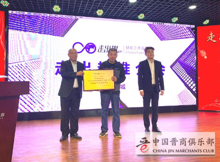 走出趣授牌仪式:走出趣CMO张海先生、走出趣运城运营中心负责人杨文革先生为代理商家颁发走出趣平台会员商家星级牌