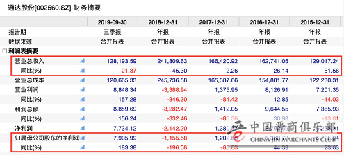 2018年,公司归母净亏损1155.58万元,这是公司上市后首次出现年度亏损。不过今年以来,通达股份业绩大幅回暖,前三季度归母净利润为7905.99万元,同比大增183.38%。