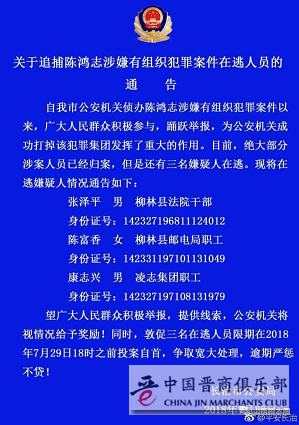 值得注意的是,7月26日,长治市公安局又发布追捕陈鸿志三名涉嫌有组织犯罪案件在逃人员的通告,其中显示,除一人是凌志集团职工外,另外两人均非凌志集团职工,分别为柳林县法院干部张泽平,柳林县邮电局职工陈富香。