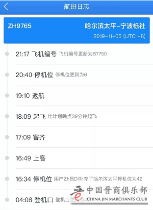 这趟航班是深圳航空ZH9765(哈尔滨-宁波)↓↓