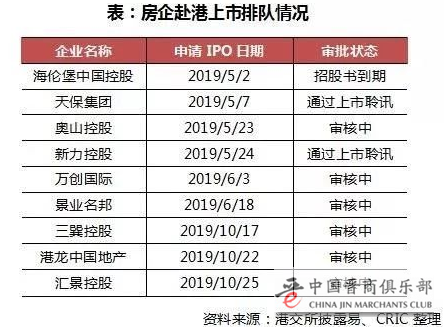 据中国证券报不完全统计,截至目前,2019年成功赴港上市的内地房企有5家,此外还有6家房企正在排队等候审核。值得一提的是,目前还处在审核状态的6家房企中,海伦堡中国控股和万创国际都不是第一次递交招股书,万创国际更是已经第三次递交招股书。