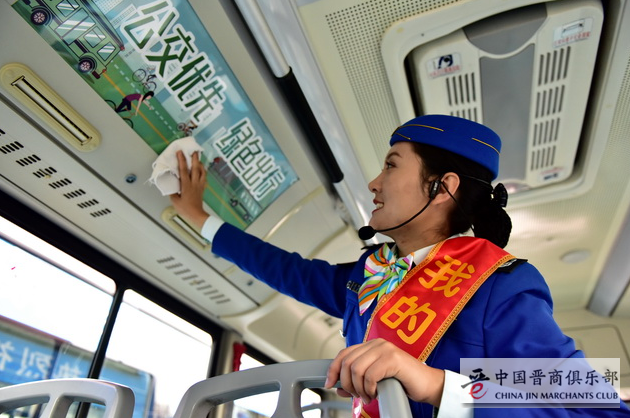 11月6日,交通运输部组织的“我的公交我的城”主题采访活动在山西省临汾市启动。图为司乘人员在整理车况。摄影/章轲