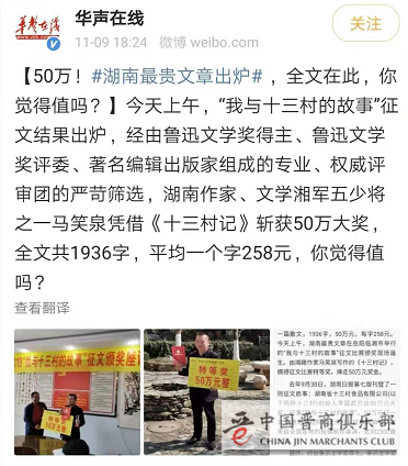 这篇特等奖文章随即在网络上引发热议,有不少网友表示,认为《十三村记》文白夹杂、语句也不太通顺,达不到能拿50万大奖的水平。