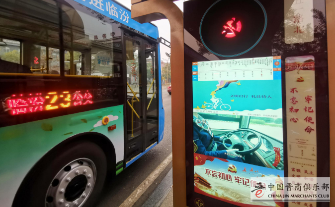 为让更多市民选择公交出行,临汾市区每一个公交站台都安装了“电子站牌”,可实时预报公交车到站信息。摄影/新京报记者 裴剑飞