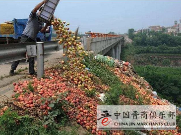 无数农民,望着堆积如山的苹果,嚎啕大哭,怒而把苹果倒掉,把苹果树砍掉。