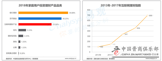 而在金融理财产品方面,银行理财仍占主导,互联网理财正在赶超。数据显示,2018年34.88%的家庭用户购买了银行理财产品。互联网理财产品收益率相对较高,备受家庭用户喜欢,互联网理财指数也因此由2013年的100点增长到2017年的695点,四年时间内增长了近6倍。