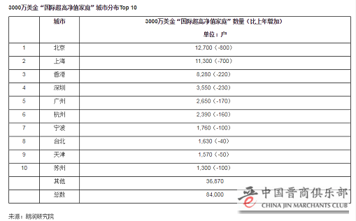 此外,拥有3000万美元的“国际超高净值家庭”数量达到8.4万户,比上年减少4800户,减少5.4%;其中拥有3000万美元可投资资产的家庭数量为5.3万户。