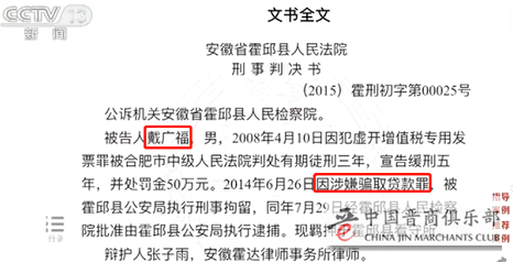 此外,记者从相关部门了解到,戴广福因通过收集他人身份证、户口簿复印件、伪造他人临时居民身份证、伪造他人户口簿、私刻他人公章,以其本人名义或冒用他人名义借款或担保,骗取安徽省霍邱县境内17个信用社贷款,实际拿走贷款资金共计19308111.79元。戴广福因骗取贷款罪,被法院判处有期徒刑5年零6个月,目前正在服刑。