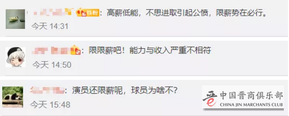 在球迷看来,这意味着中国足协要下定决心治理球员高薪现象了。有球迷吐槽称:“在与国足比赛中出场的叙利亚球星奥马里的月薪为10万叙利亚镑,折合成人民币仅1370元,甚至没有国足球员的日薪高。中国球员确实该限薪。”而部分媒体认为,这一公告意味着“史上最高限薪令”即将到来。