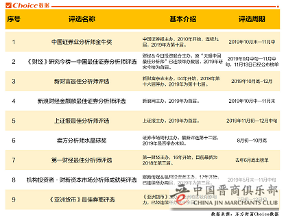 于是,各类分析师评选活动在新规颁布之后拉开序幕,2019年10月末,沉寂了一年的“新财富分析师评选”也重新启动,同时各大评选百花齐放,争相打造一个更加公允的分析师评价体系。