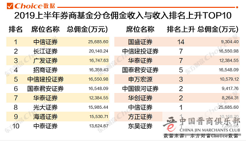 说明:取2019上半年佣金收入超5000万的证券公司参与佣金收入TOP10排名。