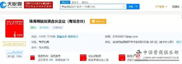 据天眼查数据显示,珠海明骏投资合伙企业成立于2017年5月11日,背后投资机构是高瓴资本。
