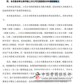 格力电器将无实际控制人