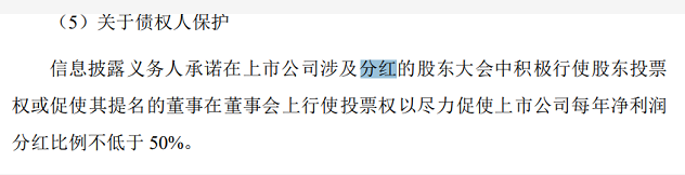 珠海明骏表示,根据相关银行已提供的贷款承诺函,如珠海明骏与其就本次权益变动签署贷款协议,为保护债权人利益,承诺在上市公司涉及分红的股东大会中积极行使股东投票权或促使其提名的董事在董事会上行使投票权,以尽力促使上市公司每年净利润分红比例不低于50%。
