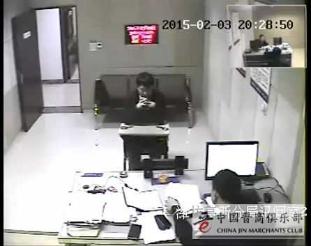 庭审期间公诉方提供的派出所审讯监控。(孙夕庆提供)