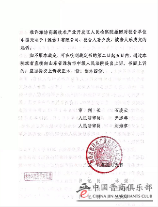 2019年5月9日,潍坊高新区法院对该案作出刑事裁定书。裁定书显示,当天,开发区检察院以证据发生变化为由,向法院申请撤回起诉。