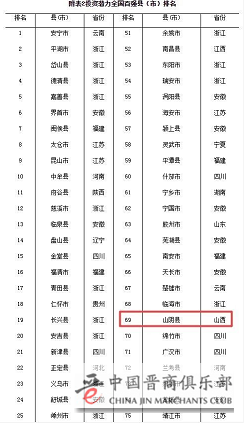 12月6日,由中国社会科学院财经战略研究院县域经济课题组完成的《中国县域经济发展报告(2019)》对外发布,在2019年全国投资潜力百强县(市)中,山阴县(第69名)、介休市(第91名)上榜。