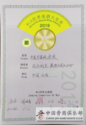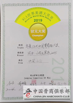 戎子酒庄小戎子黑标干红葡萄酒2015荣获WLA世界美酒大奖赛2019年度12大中国葡萄酒状元大奖和年度赤霞珠金奖。