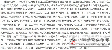 而针对此次调整,山西金控集团党委书记、董事长张炯玮表示,这次集团公司领导干部人事调整,是省委经过通盘考虑、慎重研究作出的重要决定,全体干部要把思想统一到省委的决定上来,全面正确地理解组织意图,自觉贯彻好、执行好组织决定。另外,张炯玮还强调这次会议的召开标志着山西金控改革任务已经基本落地,合并重组工作全面完成。