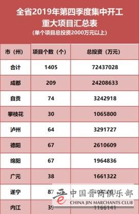 12月18日上午, 四川省2019年第四季度重大项目集中开工仪式举行。这次集中开工,全省共组织重大项目1405个、总投资7244亿元。