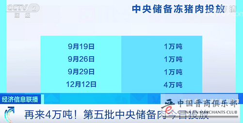 19日,商务部会同有关部门再次投放4万吨中央储备冻猪肉。本次竞价交易通过北京华商储备商品交易所交易系统进行,交易时间为12月19日13时至16时,按照“同等条件下,价高者优先、时间优先”的原则确定成交企业、成交数量和成交价格。