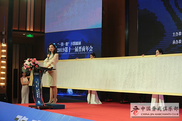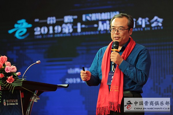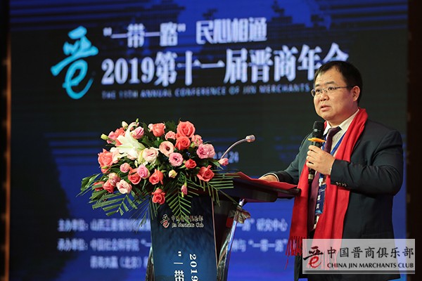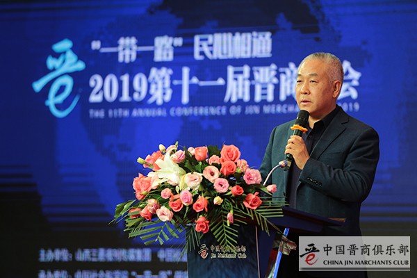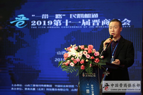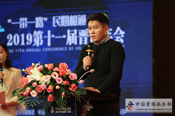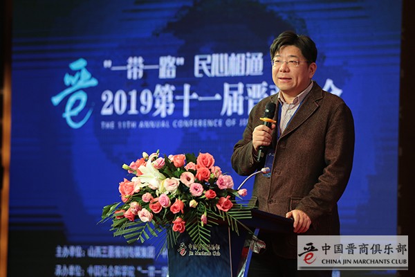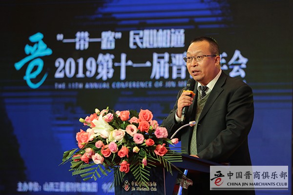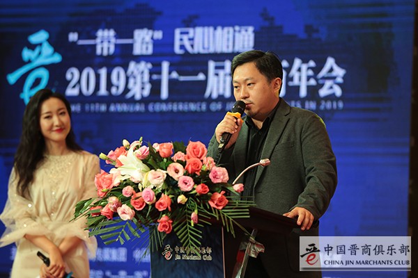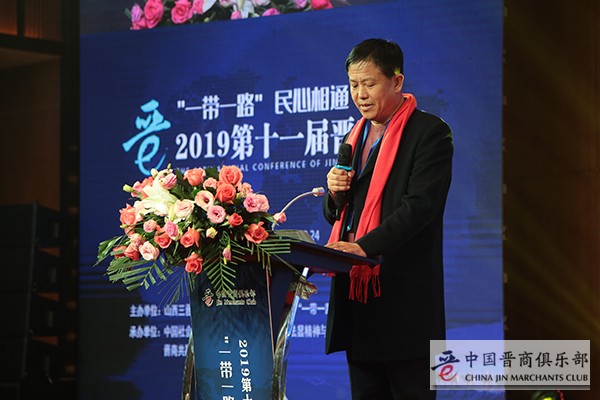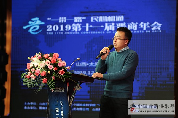 中国晋商俱乐部常务副理事长、融德创世(北京)投资有限公司董事长郝金玉做“2019第十一届晋商年会的召开背景”介绍。