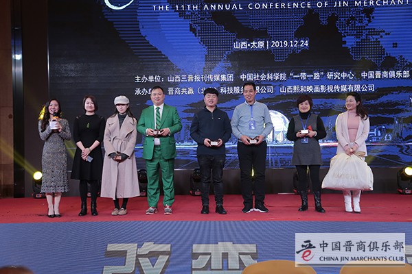 中国晋商俱乐部副理事长石勇为枣羊羊、英泰祥、优宅逸生、鑫铭格、晋圣、晋禾、海悦荟、合福晋、国祥装饰、本荣颁奖。