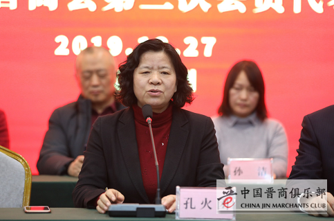 河南省工商联党组成员、副主席孔火团在讲话中,对河南省晋商会第三次会员代表大会的成功召开表示热烈的祝贺!对新当选的新一届领导班子成员表示热烈的祝贺!对商会第二届理事会在张勇会长领导下,所取得的成绩给予了充分的肯定。她希望新一届领导班子一要讲政治,坚持商会组织统战性、经济性、和民间性的有机统一,按照中央和上级的部署,坚定不移向前走;二要讲团结,讲团结首先是商会组织领导班子要团结,没有领导班子的团结就没有全会的团结,就做不出好的成绩,所以领导班子一定要带头搞好团结;三要讲服务,我们一是要服务于党和政府,二是要服务会员企业,三是围绕中央和省委提出的中国更出彩、中原更出彩开展好各项工作;四要讲发展、讲奉献,多发展平台,多开展调研,千方百计帮助会员企业解决实际困难和问题。不久前,党中央和国务院下发了《关于营造更好发展环境支持民营企业改革发展的意见》,各地方相继下发文件,做出了支持民营企业的具体措施,我们抓住这些政策机遇,结合本地方本企业的实际,为企业自身的发展积极作为,努力创新,争取新的更大的进展。