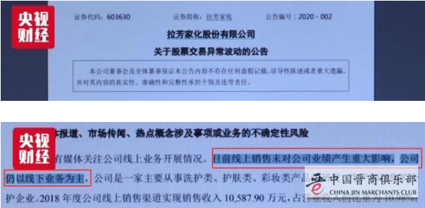 拉芳家化表示,公司仍以线下业务为主,目前线上销售未对公司业绩产生重大影响。