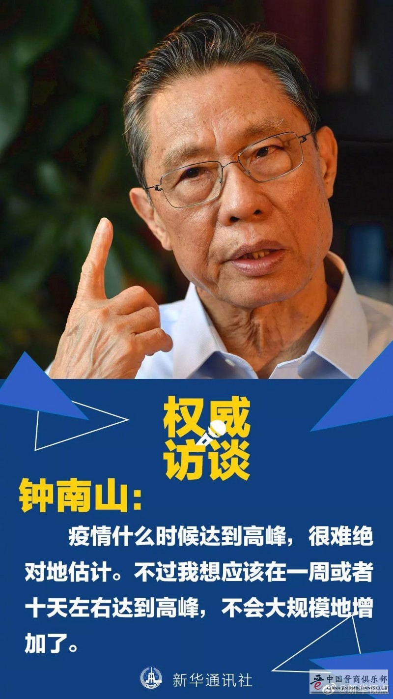 钟南山:疫情什么时候达到高峰,很难绝对地估计。不过我想应该在一周或者10天左右达到高峰,不会大规模地增加了。