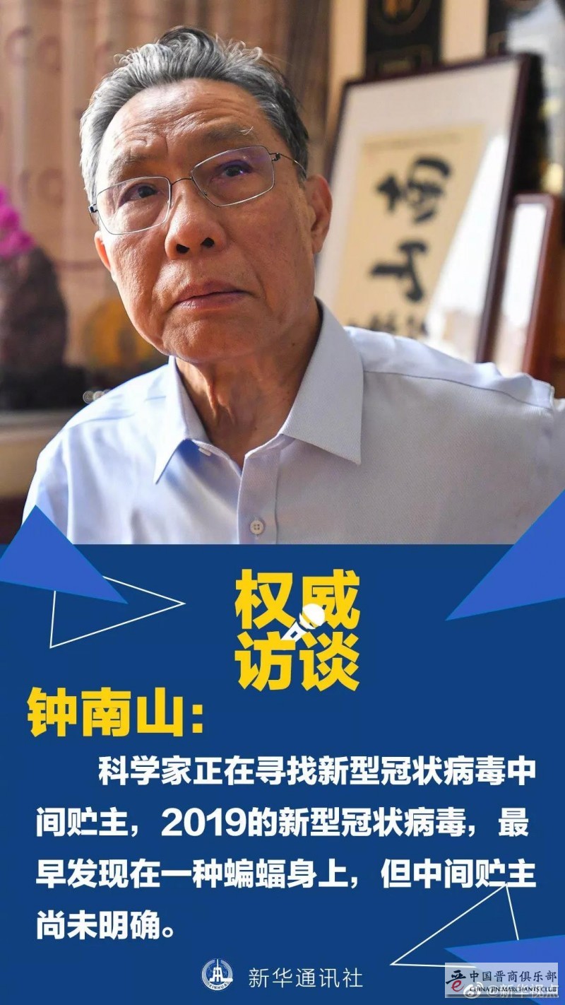 钟南山:科学家正在寻找新型冠状病毒中间贮主,2019的新型冠状病毒,最早发现在一种蝙蝠身上,但中间贮主尚未明确。