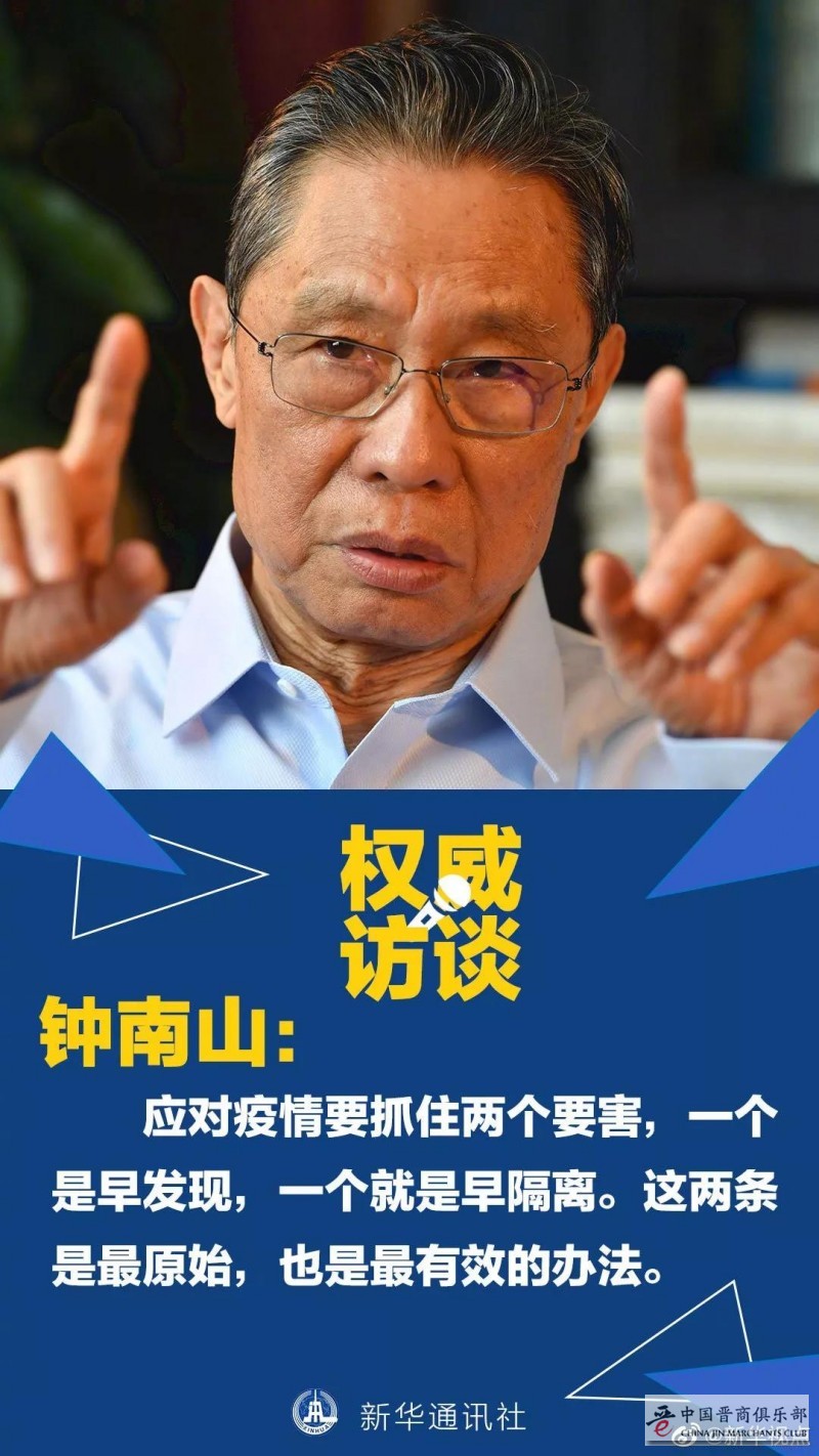 钟南山:应对疫情要抓住两个要害,一个是早发现,一个就是早隔离。这两条是最原始,也是最有效的办法。