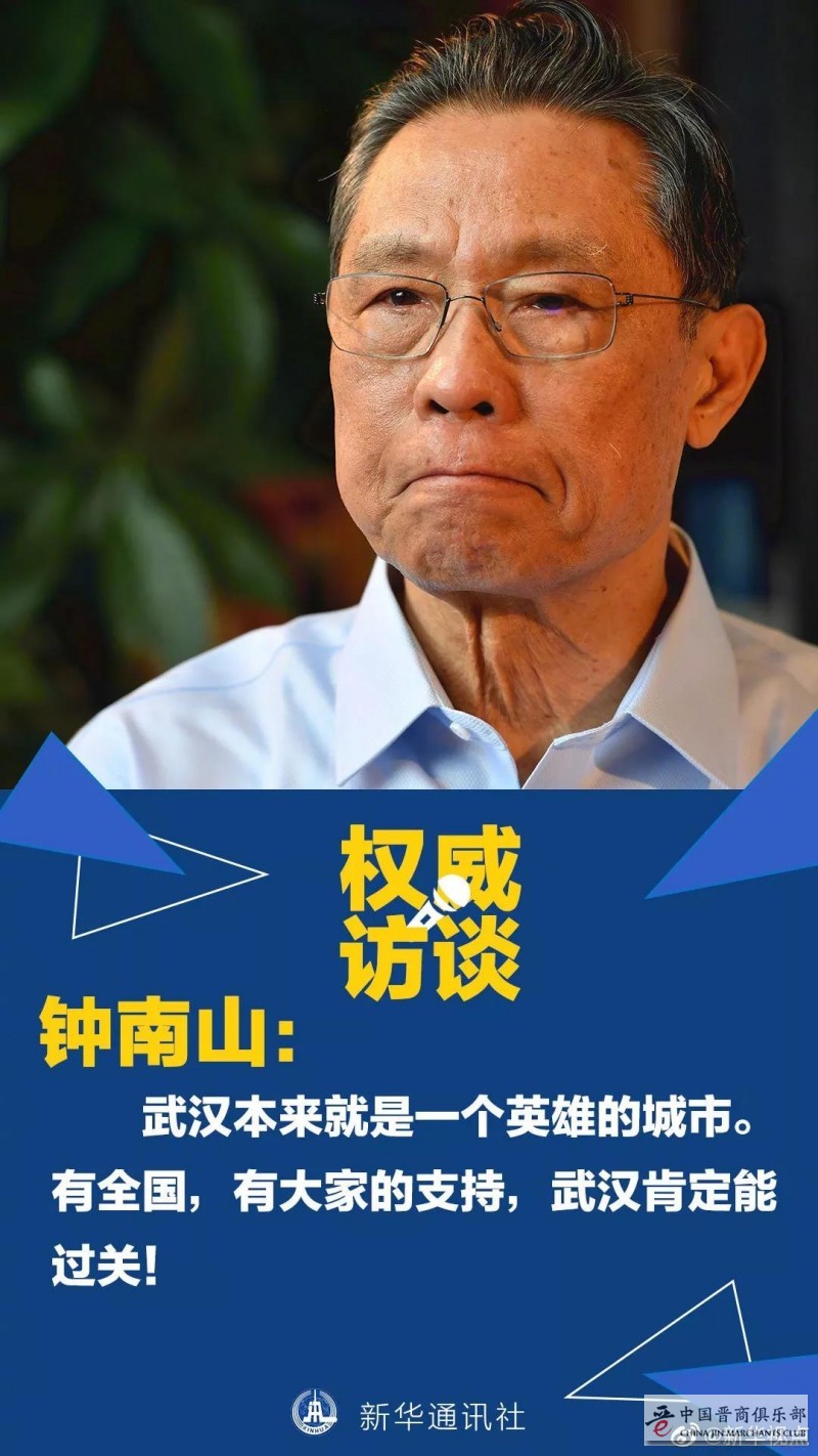 钟南山:武汉本来说就是一个英雄的城市。有全国,有大家的支持,武汉肯定能过关!