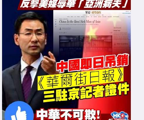 中方依法依规处理外国记者事务。对于发表种族歧视言论、恶意抹黑攻击中国的媒体,中国人民不欢迎。鉴此,中方决定从即日起,吊销《华尔街日报》三名驻京记者的记者证。