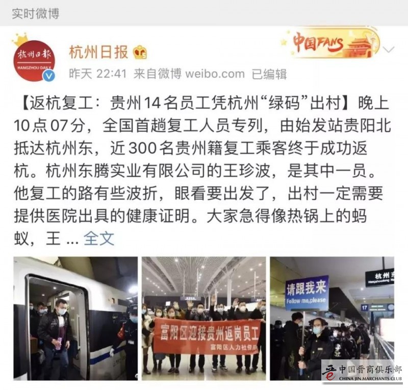 为了让外地务工人员赶紧回城,杭州宣布:包专列,向疫情平稳地区开专列组织企业员工返程复工,首批免费。